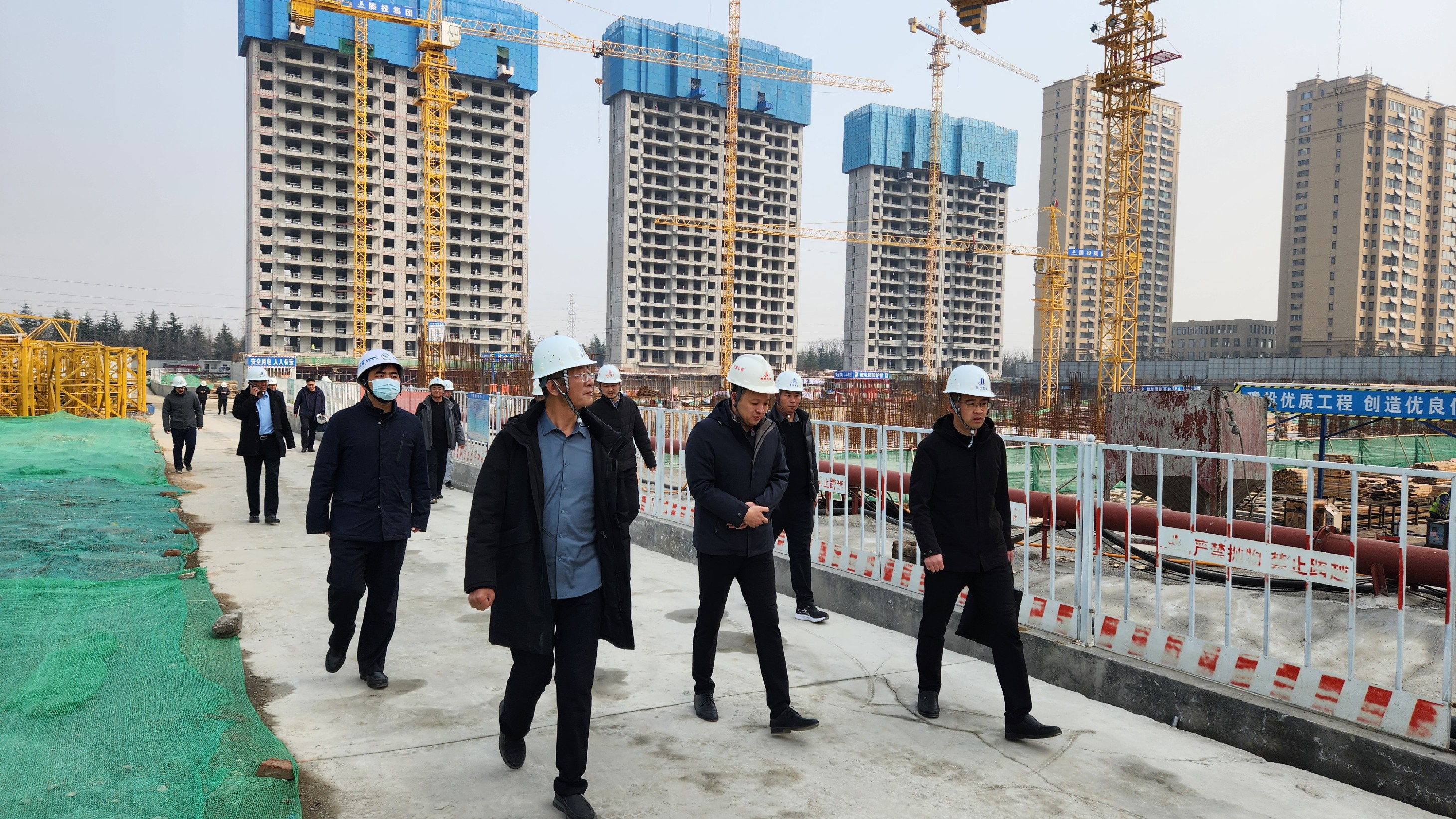 春日好时光,施工建设忙。正逢春季施工黄金季,滕投悦府二期项目建设工作快速有序推进。(各栋号进行主体浇筑作业)在推进工程建设进度不断向前的同时,工程管理三部协同监理单位对已完成的工作持续进行跟踪复检,查缺补漏,专研工程细节,对混凝土强度、剪力墙构件养护等重点部位工作持续要求施工单位加强养护力度以保证工