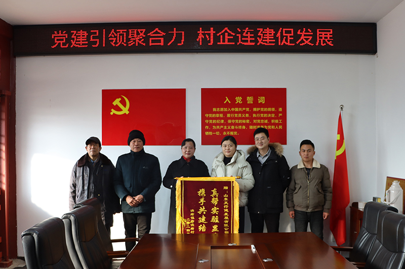 1月10日,洪绪镇党委委员、组织科长王慧,副镇长魏成乾,洪绪社区党委书记田海峰带领后洪绪村干部一行8人,将印有“真帮实驻显真情,携手共建结硕果”的锦旗送到山东天行健发展有限公司,表达全体村民对公司和驻村第一书记张亚楠同志帮扶村民促发展的感激之情。天行健公司支部副书记江浩及相关部室人员参加座谈会。&