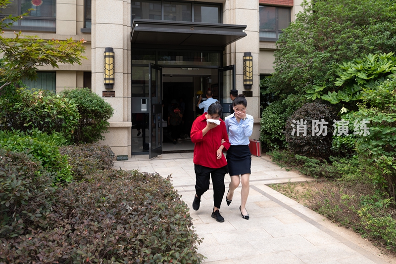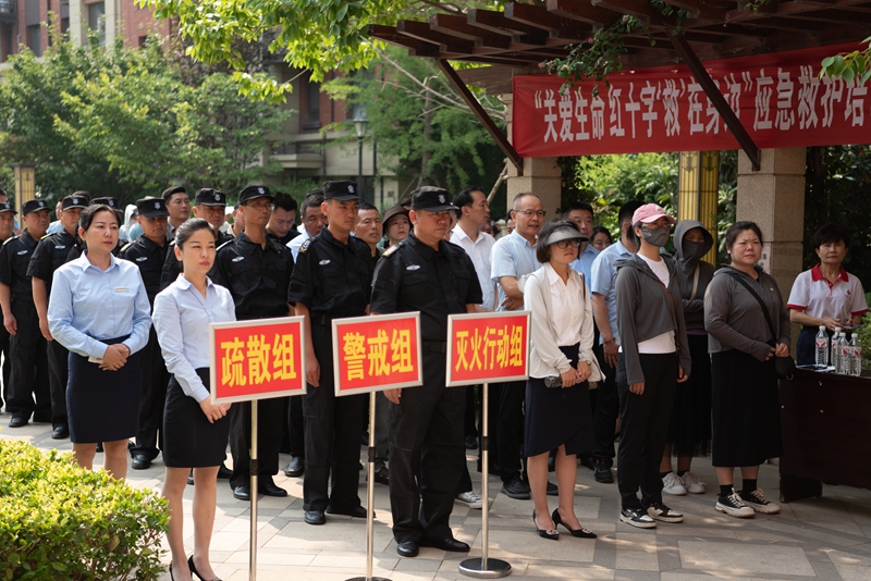 活动邀请到市消防大队消防员、市红十字会医疗急救人员、拼搏(中国)各下辖住宅项目物业经理和安全专员、小区业主代表共同参加演练活动。